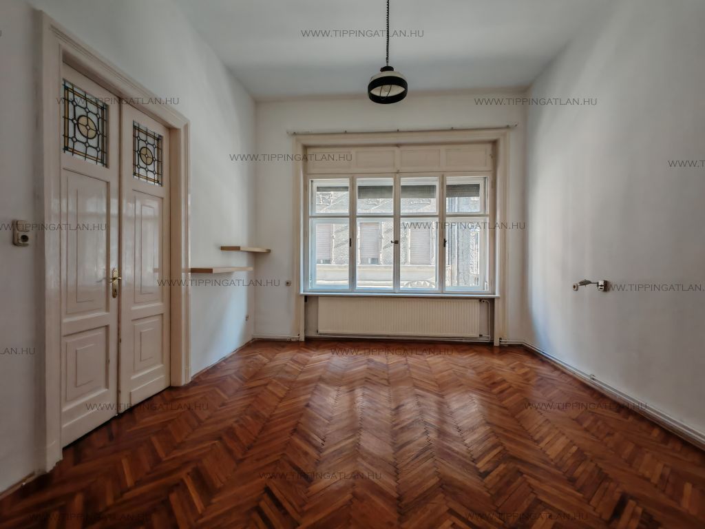 3 szobás nagypolgári lakást egy kívül belül rendezett liftes épület 1. emeletén. Az ingatlan kitűnő elrendezésű, körbejárható tágas terekkel és hatalmas ablakokkal rendelkezik, amelyek a szűk belvárosi utca ellenére természetes fénnyel látják el. Klasszikus belvárosi hangulat, nagy belmagasság és kiváló arányú szobák jellemzik.