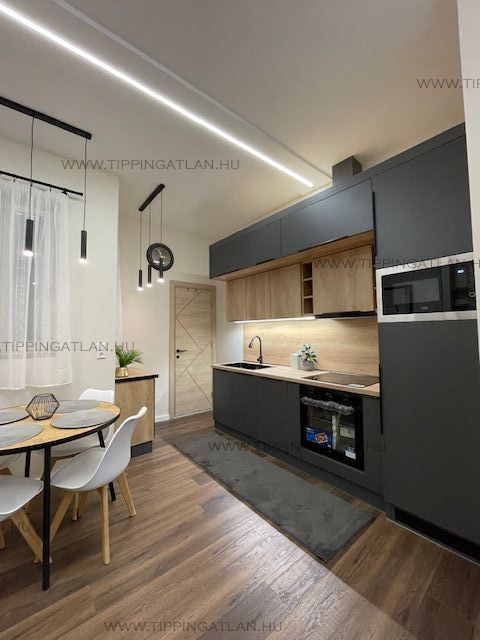 •szintén egyedi asztalos bútorokkal és gépesített konyhával felszerelt