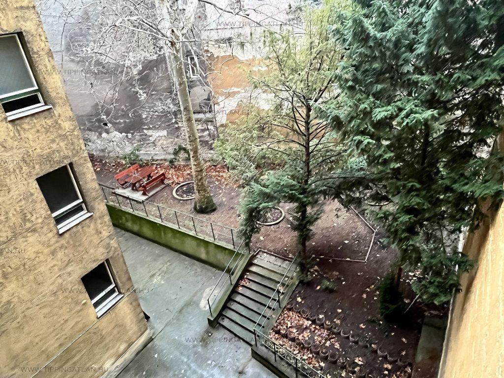 A bejárati ajtóval szemben található, a két tágas, franciaerkélyes, hasonló méretű szoba, amiknek az ablakai Déli tájolással, a fákkal övezett Kálvária térre néznek. A belső szobából, egy praktikus gardrób lett leválasztva, így nincs szükség ruhásszekrényre a szobában. A gardróbon keresztül is elérhető a fürdőszoba, ami átjárást biztosít a konyha és a szoba között is. A mellékhelyiség külön helyezkedik el, és az előszobából nyílik. Az étkező-konyha a belső kert felé néz. A beépített konyhabútor a vételár részét képzi.